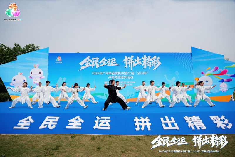 上午九时,“公仆杯”正式开幕,第十三届全国运动会太极拳冠军、广州市非遗太极拳代表性传承人陈娟亮相现场的全民健身展演环节,带领数千名参与者演练正太极四季导引工间操之“春生五式”,以行云流水的《太极神韵》演绎了太极拳的当代生命力。活动高潮出现在广州市直属机关合唱团献唱全运主题曲《全运来四方》时,2004年雅典奥运会跳水冠军杨景辉登场合鸣,奥运金牌得主与现场观众声浪的交融,生动诠释了“全民全运”的办赛理念。
