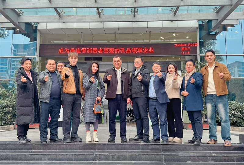 在重庆天友乳业股份有限公司,公司副总经理龙帅等公司高层领导的陪同考察团,参观了天友乳业品牌形象展览馆、乳制品生产车间、检测中心、研发中心和冷链物流配送中心等部门,并对天友乳业的历史沿革、奶源分布、生产流程、销售网络、质量管控、生产加工和冷链物流配送等进行详细了解。考察团对天友乳业在乳制品行业所取得的成就表示高度赞赏,认为双方具有较大的合作空间。