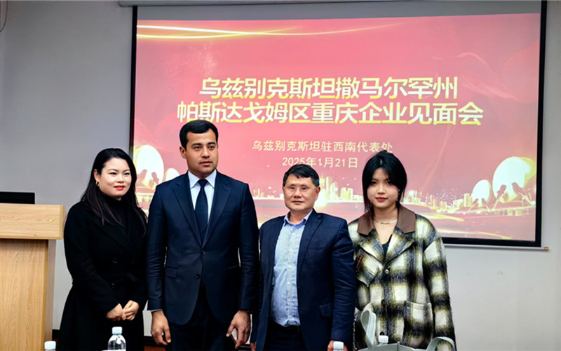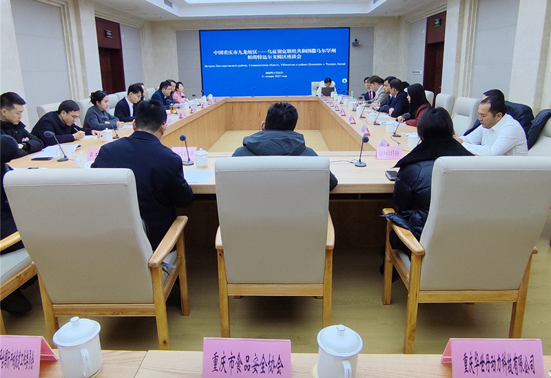 实地考察后,在九龙坡区政府会议中心,举行了帕斯特达尔戈姆区与重庆企业交流座谈会。九龙坡区副区长廖英与帕斯特达戈姆区区长谢尔佐德先生,分别作了致辞。乌兹别克斯坦共和国撒马尔罕州驻华代表汪小又,分享了在乌经商创业经验;参加座谈的重庆企业分别作了交流发言。