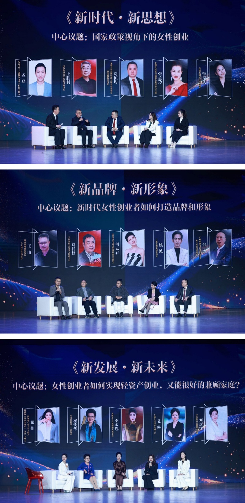 圆桌论坛环节围绕“新时代·新思想”、“新品牌·新形象”、“新发展·新未来”三大主题展开了深度探讨。嘉宾们就女性创业如何应对快速变化的市场环境、如何塑造新品牌形象以及如何实现可持续发展等问题进行了深入交流与互动,推动了思想的碰撞与言之有物的讨论。