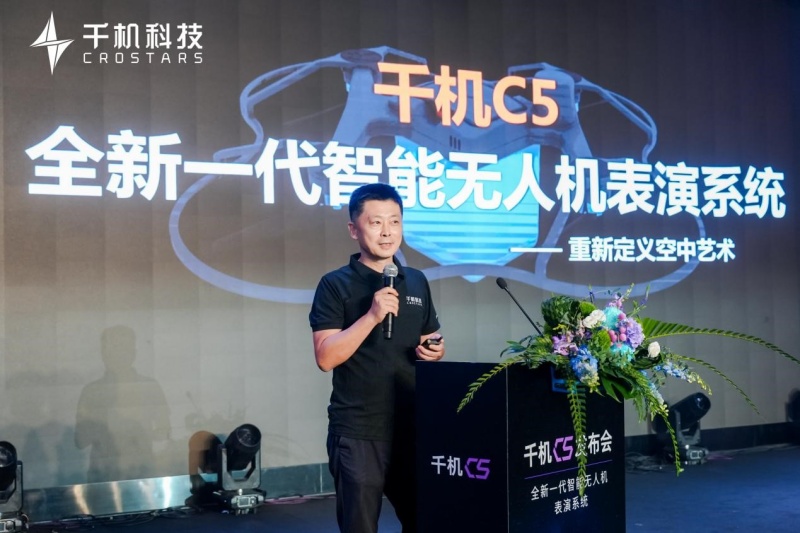 在发布会重磅环节,千机科技集团CEO崔嵬详细解读千机C5全新一代智能无人机表演系统,用“表现力、效率、安全”三个关键词概括其核心优势。表现力上,千机C5基于模型和叠帧自动化计算实现空中展演高动态表演效果,重新定义空中表演标准;续航更是实现重大突破,25分钟超长表演时长远超行业内15分钟的续航边界,让沉浸式体验不间断,以完整表演周期重塑行业标杆,真正实现“不是追赶续航,而是让续航追赶创意”。效率层面,千机C5带来六大革新,重新定义部署流程,仅需4人就能轻松部署千台机器,箱式起飞使空间效率提升80%,智能电池、运输成本等都有重大革新。安全方面,六大保障机制涵盖备用表演程序、降落伞防护、智能缓降等,抗风能力达12m/s,防水标准升级到IP54,可应对突发微雨紧急情况,大幅提升安全系数。