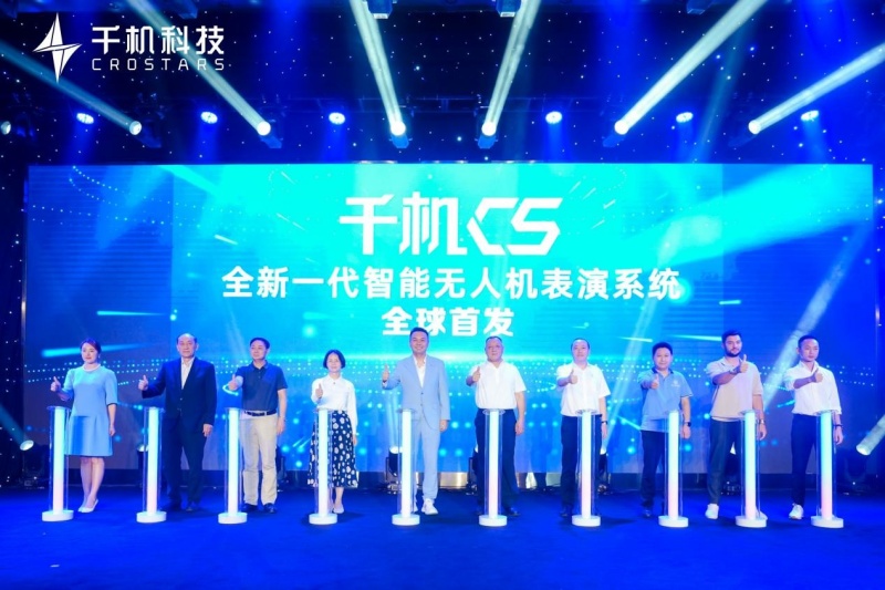 千机C5揭幕仪式将现场气氛推向最高潮。千机科技集团创始人石哲元、广东省无人机行业协会、省通用航空协会武卫会长等10位领导嘉宾共同上台,点亮启动柱,正式宣布千机C5全新一代智能无人机表演系统全球首发。