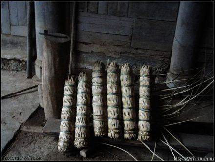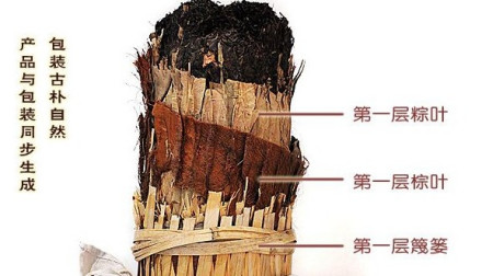 1、花卷茶以蓼叶裹胎,棕片作内衬,外用篾片捆压勒紧箍实,正规的产品篾篓上会喷上