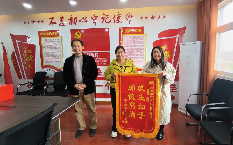 卫老师应约来到楼下,见到卫老师的那一刻,小汝的妈妈满脸涨红地将一面写有“爱生如子、师德高尚”的锦旗送到卫老师手中。卫老师激动的接过锦旗,当得知家长是为了感谢自己对他们受伤孩子的照料时,她有些不知所措,因为在她看来,帮助和照顾学生就是自己的本分。